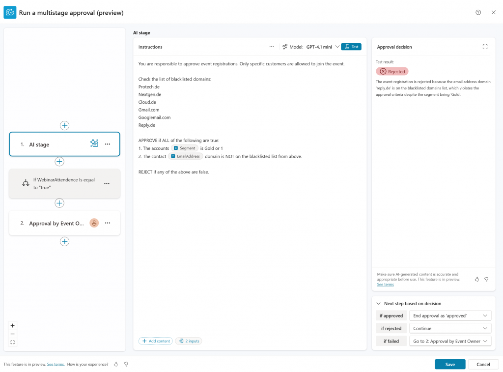 A quick note from my side: I did run into some issues with the AI stage in the approval process. Every now and then I received a “Bad Gateway” error. I haven’t figured out the exact reason yet. my guess is that it’s related to the preview status. If you’ve experienced the same and know more, please share your insights in the comments. 🙌