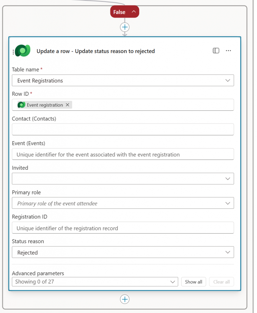 If the approval is rejected, we update the status reason of the event registration to “rejected” and the status to “inactive” (our new status reason we have added in the beginning).