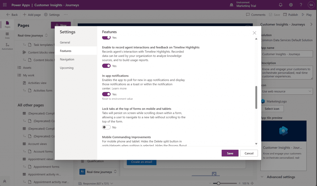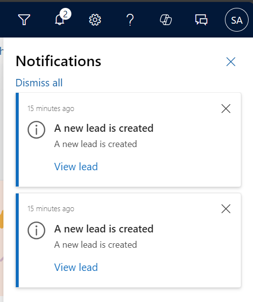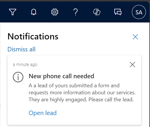 In-app notifications are a nice little function in the model-driven apps that I haven’t used that often myself. But I find it super charming. In the app, the little bell icon shows the notifications, just like when you have unread messages in Messenger on your mobile phone. It’s informative, but not intrusive.
