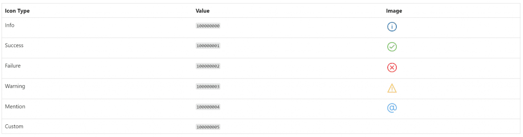 There are other parameters for notifications that you can define if required. With Toast Type, you enter whether there should be a pop-up or whether the notification should not appear separately on the screen. Expiry describes the number of seconds after which the notification should be deleted if the user has not already canceled it. Under* Icon Type*, you can choose from a set of icons for the notification, but you can also create your own icons.